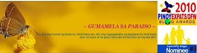 I was a bit apprehensive when Mr. Kenji Solis, founder of PEBA, asked me to join the PEBA because I didn't know anything about blog contests and I saw that the nominees of PEBA 2009 were the best OFW bloggers. When I won, I was unexpectedly happy. Grabeh, I was glad my blog was appreciated. To all PEBA 2010 aspirants and nominees, give your stories a bit of twist; though seemingly hallowed from the old crypt of OFW tales. There should be some redeeming values in the end of the story and keep a balance of sad-happy, agony-ecstacy, and sacrifice-sucess. This will be a sure win in the PEBA. ~ Amalia Menta of Francesca in France, 4th placer